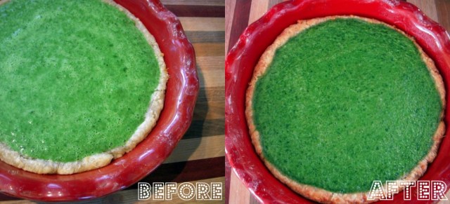 For the filling, I used my kale instead of turnip greens, and substituted sour cream for the heavy cream. Then I blended up all of the other ingredients (except for the herbs de Provence – only because I forgot to add them) into a very green frothy filling.