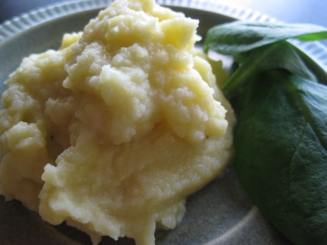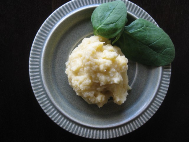 Super simple, very tasty. A twist on the old mashed potatoes dish. This is delicious on it’s own, but would be very lovely over a bed of cooked kale or other winter green.
