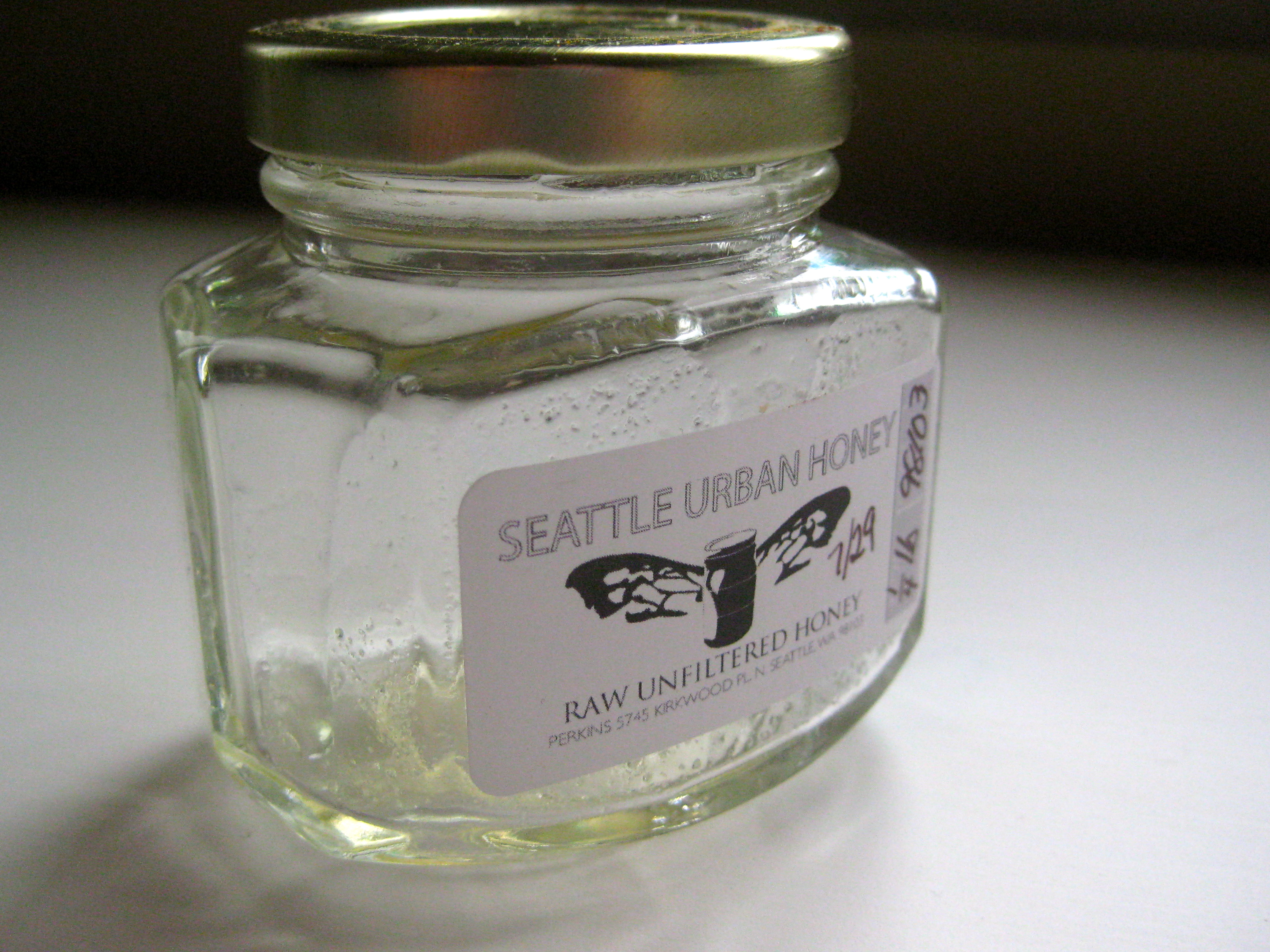You can also see that there is a zip code on the side of the label of the Seattle Urban Honey. This honey came from bees that live just a mile or two from me. Super local!