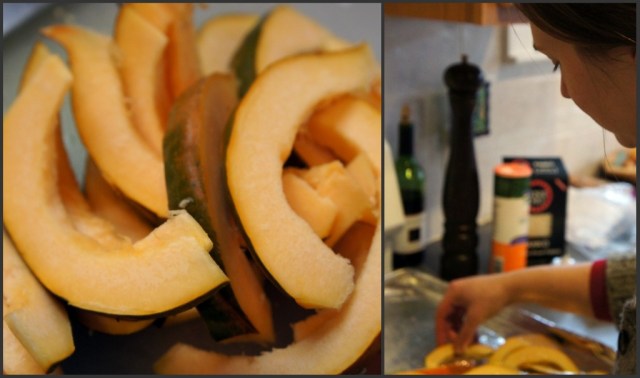 The Real Time Farms Headquarters had a plump acorn squash from Brines Farm (hurray for cold storage for extending what’s in season!) lying around, just begging to become something delicious. As I mentioned recently, I’m quite enamored with Yotam Ottolenghi’s cookbook Plenty, and as soon as I saw that squash, I knew just what I wanted to cook. Ottolenghi’s “Crusted Pumpkin Wedges with Soured Cream” with the squash used in place of pumpkin.
