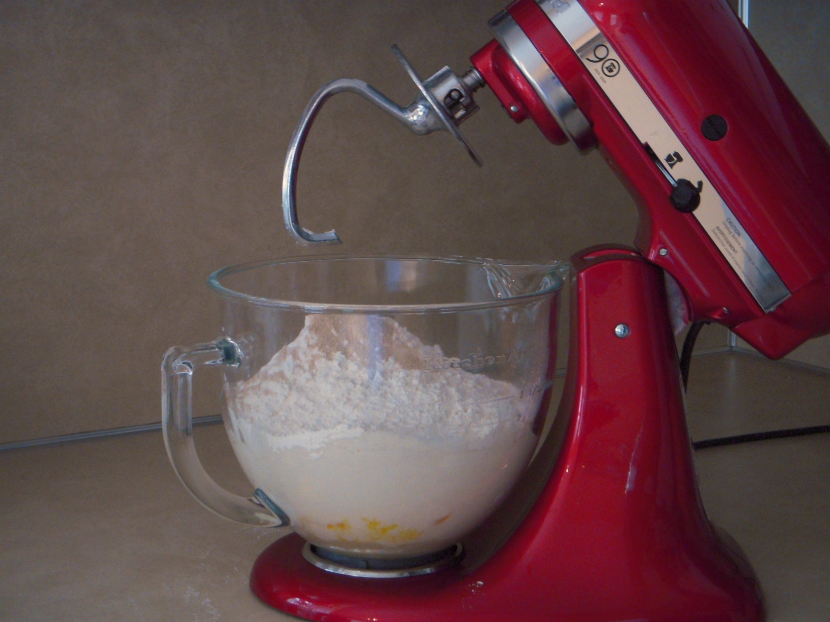 I found a recipe, gathered up my ingredients, and dumped them in my KitchenAid mixer. Yes, you can use the dough setting on a bread machine, or mix and knead the dough by hand. I’m completely infatuated with the shiny red toy that my husband bought me though, so I’m in favor of letting my mixer do the work for me whenever possible!