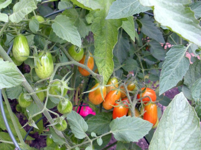 But the real fun came once the plants starting bearing fruit. Our daughter has always loved tomatoes – I craved anything tomato-based when I was pregnant with her – so when she realized that there were tiny grape tomatoes sprouting from those tall green plants, it was all we could do to keep her from eating her weight in the bright-red gems!