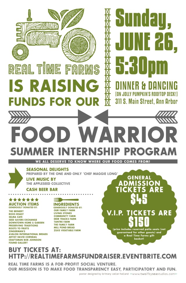 Real Time Farms’s Food Warrior Program is asking the questions of your farmers that you do not have time to ask. We all deserve to know where our food comes from. If you agree, consider attending or donating to our Rooftop Farm Dinner and Dancing Fundraiser Event to support this summer’s Food Warrior Program.