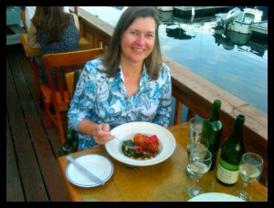 Jane Kirchner, Senior Director of Marketing and Communications, American Farmland Trust at one of last year’s participating restaurants , The Market Restaurant on Lobster Cove, in Gloucester MA.