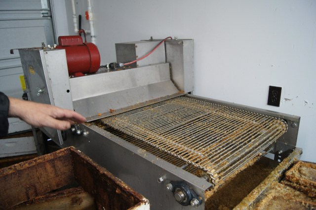 Mark doesn’t outsource any of his labor, unless it’s to his neighbors or volunteers from their church group. I was given the grand tour, in reverse, starting with the refining of honey. Mark removes the honeycomb frames from the hives and runs them through a mill to remove a waxy cap that bees produce to help store the honey. Then the frames are hung, run through a centrifuge and the honey is pumped into large tanks to settle before bottling.