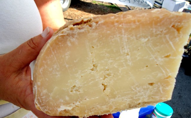 blankThe Pacheco’s cheese-making process involves Donna, Jim, and all their four children, in addition to a couple of employees. The cheese is handled with minimal machinery, from milking to squishing the huge balls of curd of whey,the process is largely done by hand. The cheeses are pressed into wheels that weigh in from 15-18 pounds and aged at a controlled temperature between 50 and 50 degrees.