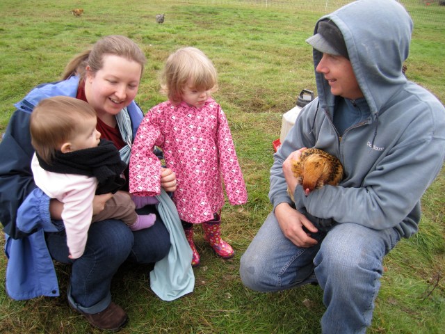 All of these practices point toward organic certification, but the Schwabs are not interested in pursuing it. “We’re not certified organic because we don’t need to be; people can come to the farm and see for themselves how we care for the animals,” Matt explains. It is this transparent policy that led me, as well as a dozen other curious eaters, to Inspiration Plantation on a cold, rainy Saturday afternoon in Washington. Every month, Matt and Jen invite their customers to a farm tour so they can get a clear understanding about where their food is coming from.
