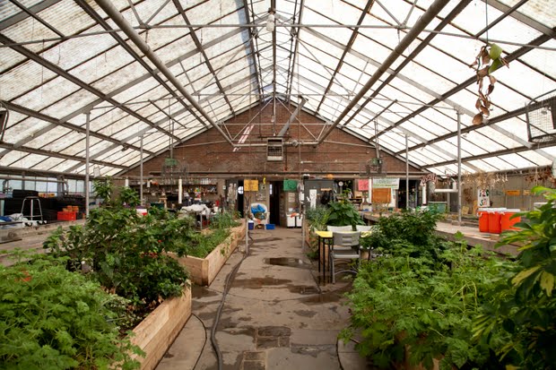 As a sidelight, Sarah Steedman grew up in Ann Arbor. She took an organic gardening program at UC Santa Cruz, and then – moving to CHicago about that time – persuaded the Chicago Parks Dept that with a modest grant she could rehabilitate a dilapidated greenhouse (the one in the photo) and start a wonderful program that continues, bringing neighbors, children and older adults, together to form that splendid garden. Her imagination and vision led to a wonderful, continuing, neighborhood resource.