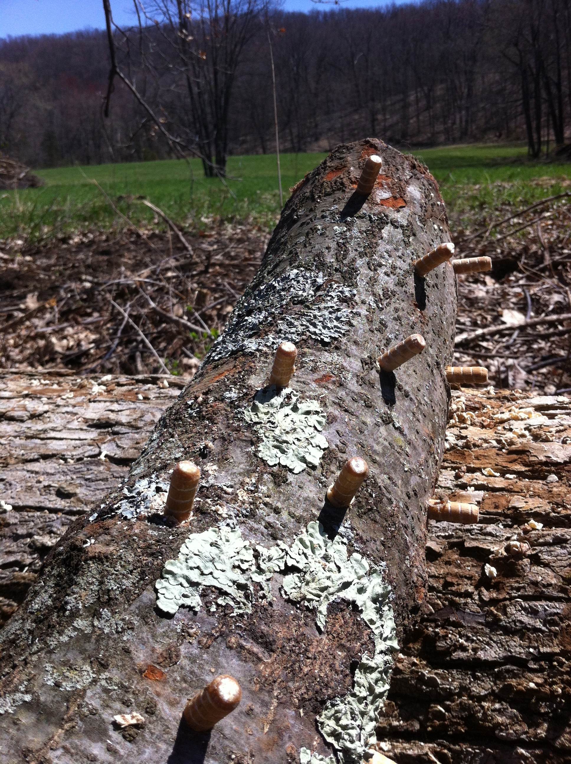 Farm Beginnings is the chronicle of a city girl starting to farm. Last installment Corinna spoke of mulch. Today she speaks of inoculating logs with fungus plugs.