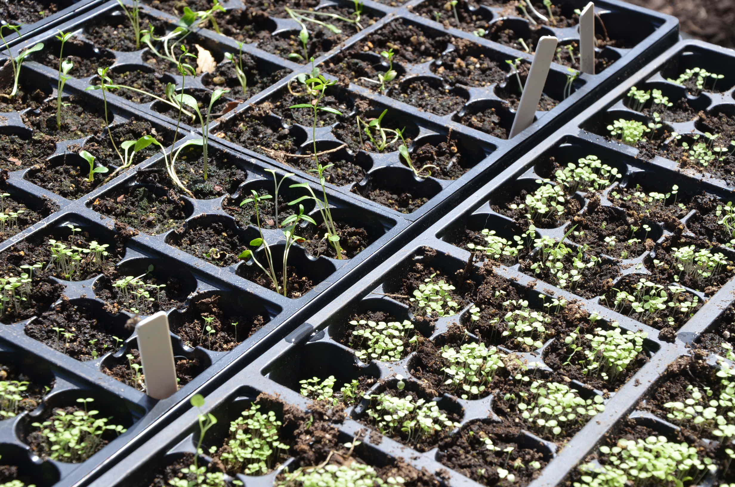 A few weeks ago I gently tucked tiny black and silver specks into wet soil. I placed plastic covers over the soil, put the flats under a sunlamp on the radiator and waited. The soil was very wet. I did not disturb the flats at all, water condensed on the inside of the mini plastic greenhouses.